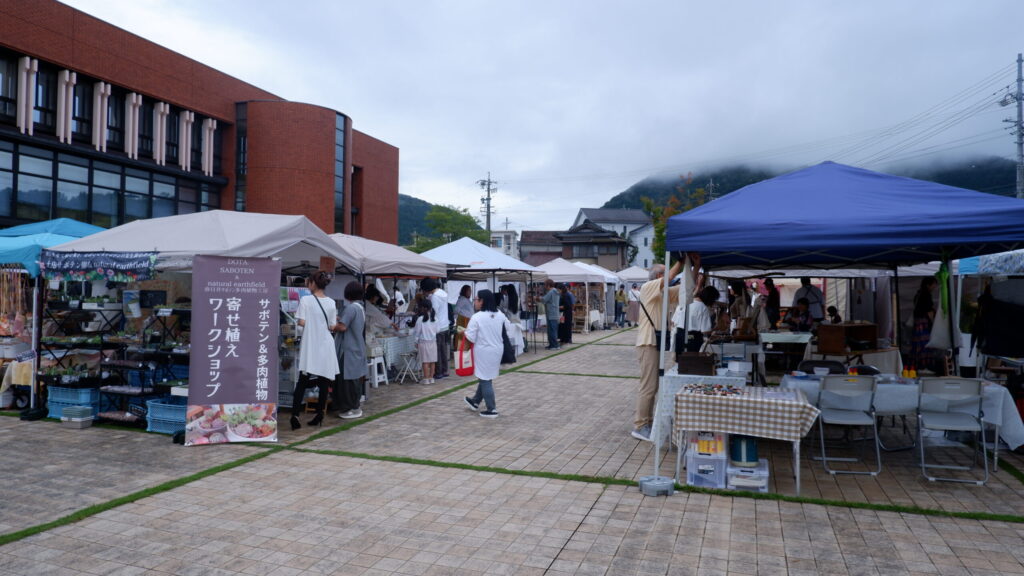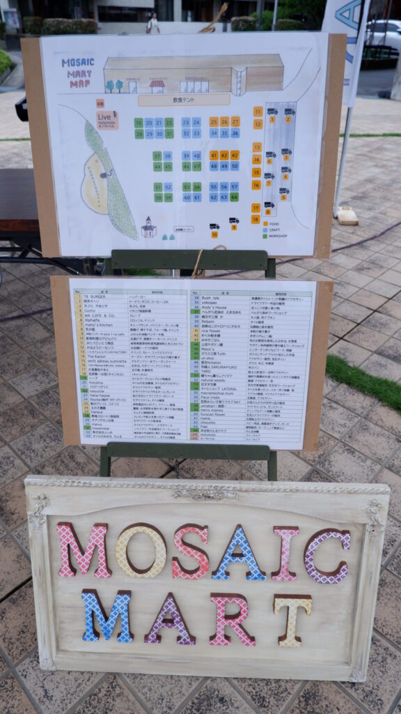 私が訪問した日は、モザイクタイルミュージアムの前にある広場で、モザイクマート2025というイベントが催されていました。なんと5年ぶりの開催だそうです。出店も多く、30分おきにアーティストによるライブも行われており、天気があまりよくない中、大盛況でした。