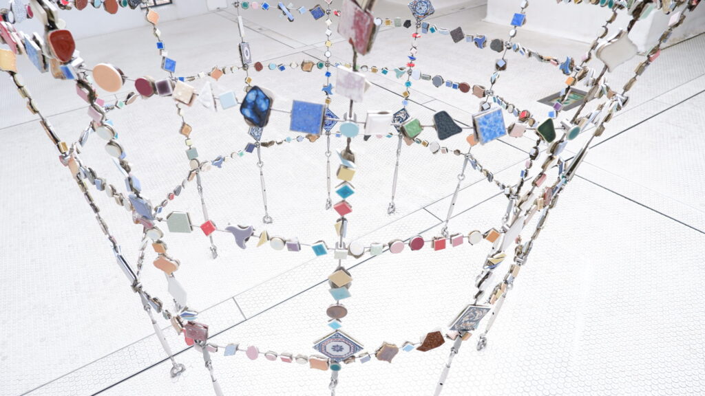 4階の展示室1は壁も天井もモザイクタイルに囲まれた神秘的な空間。吹き抜けに作られたワイヤーにモザイクタイルが散りばめられているアートが有名ですね。訪れた日は小雨の降る曇り空でしたが、それでも自然光の差し込むこの展示室はノスタルジックで素敵な空間でした。