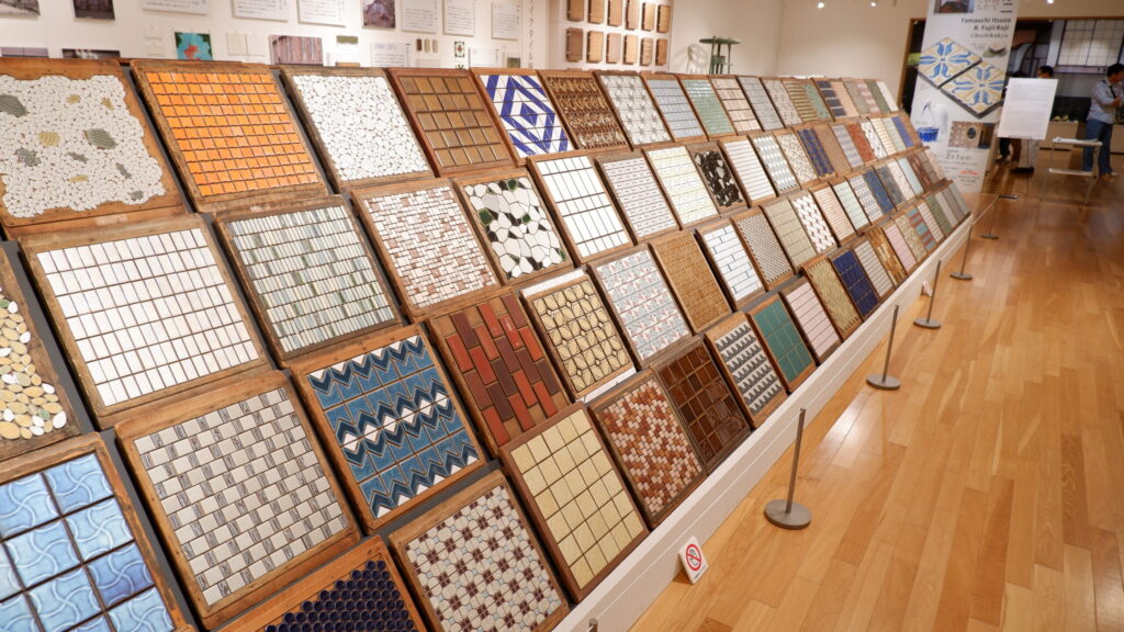 3階の展示室2ではモザイクタイルの歴史が学べます。また、奥には特別展示のコーナーがあります。10/4~2/1は「山内逸三と藤井厚二 聴竹居で育まれたものたち」という特別展が催されています。聴竹居といえば、日本の住宅建築の最高傑作。建築家・藤井厚二が研究を重ねて建てた自邸で、日本の気候風土に合わせて取り入れられた環境工学的な工夫や和洋折衷の空間が特徴的です。